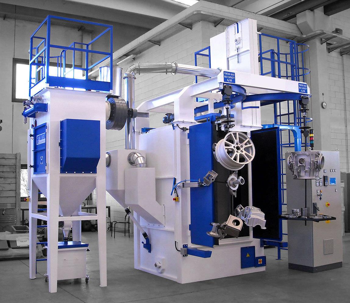 铸造件是最需要抛丸机产品的行业,无论是压铸还是锻铸件的表面清理、除锈、去除氧化皮以及抛丸强化工艺,特别适用抛丸机进行表面清理。针对大型铸件如阀门、船用配件,可采用大型吊钩式或台车式抛丸机进行去氧化皮工作。